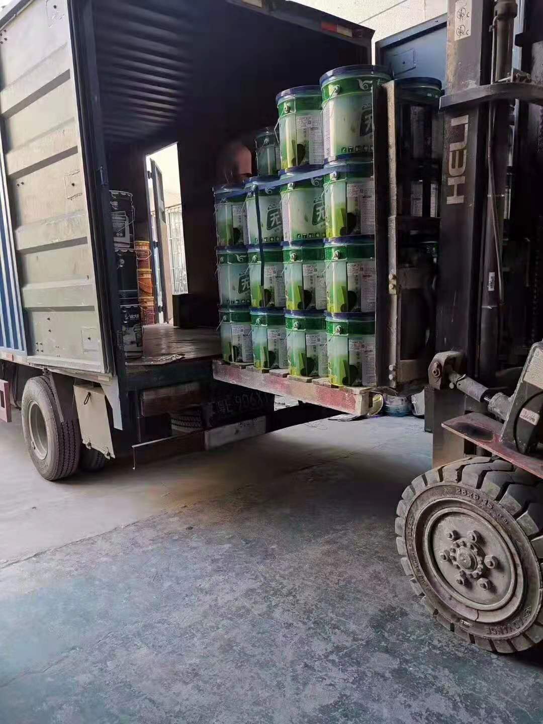 友情無機涂料正在裝車發貨中